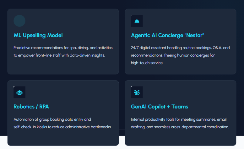 Our roadmap ensures AI doesnât replace the human touch â it elevates it. Freeing staff from low-value tasks so they can deliver unforgettable, high-emotion guest experiences.